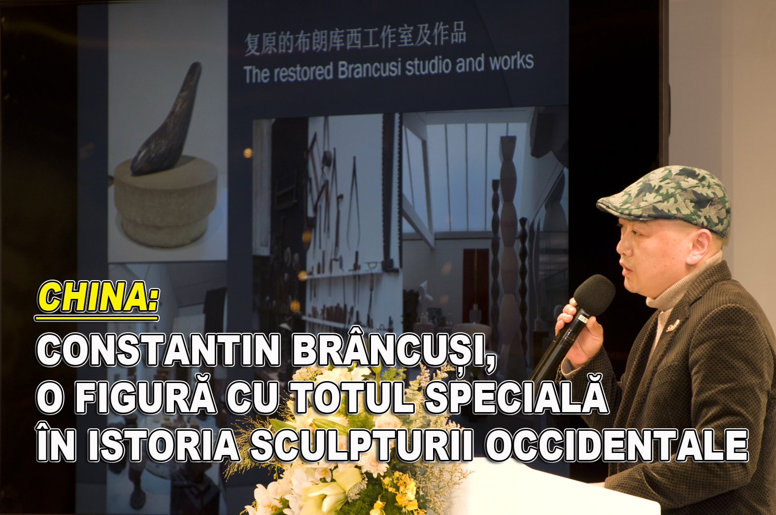 În conferința care a fost prezentată timp de mai mult de 70 de minute, Prof.Univ.Dr. Zhi Min a evidențiat că în atelierul său de lucru din Paris, Constantin Brâncuși a ținut aproape și a ajutat să evolueze mai mulți artiști, între care Isamu Noguchi (artist american de origine japoneză) sau Amedeo Modigliani (artist italian).